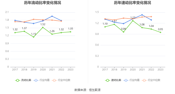 2023年,公司流动比率为1.35,速动比率为0.95。