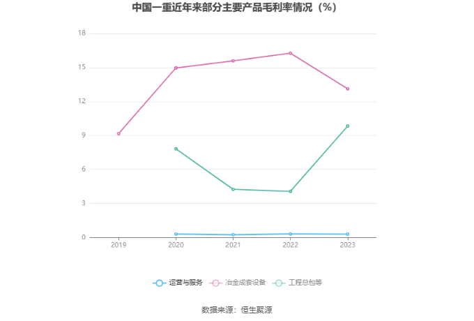 分产品看,运营与服务、冶金成套设备、工程总包等2023年毛利率分别为0.29%、13.12%、9.83%。