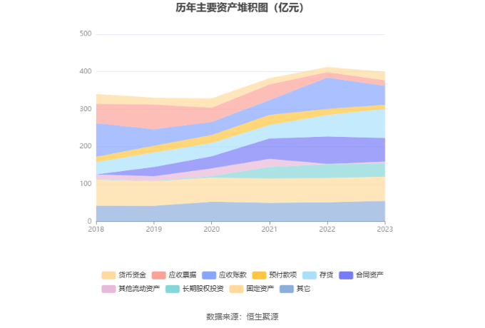资产重大变化方面,截至2023年年末,公司应收账款较上年末减少39.90%,占公司总资产比重下降7.70个百分点;存货较上年末增加35.72%,占公司总资产比重上升5.54个百分点;货币资金较上年末增加63.84%,占公司总资产比重上升2.31个百分点;合同资产较上年末减少13.20%,占公司总资产比重下降1.85个百分点。