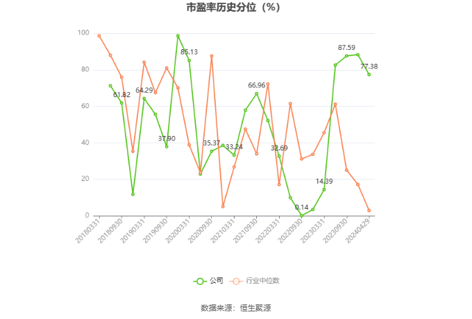 市盈率为负时,不显示当期分位数,会导致折线图中断。