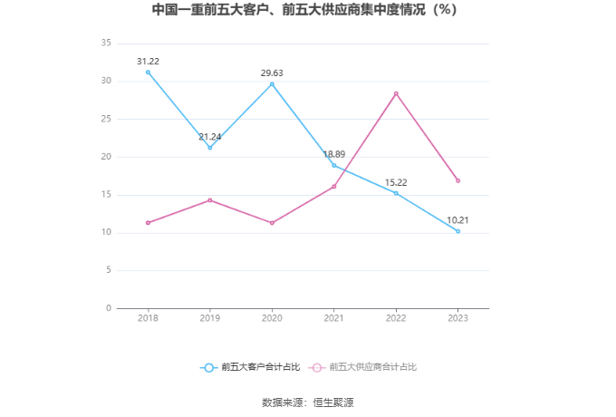 值得注意的是,根据年报数据,中国一重31.21%股份处于质押状态。其中,第一大股东中国一重集团有限公司质押21.40亿股公司股份,占其全部持股的48.85%。