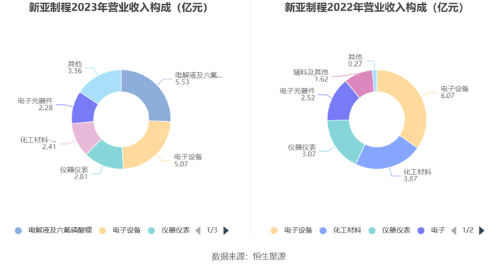 分产品看,电解液及六氟磷酸锂、电子设备、仪器仪表2023年毛利率分别为0.16%、5.64%、9.11%。