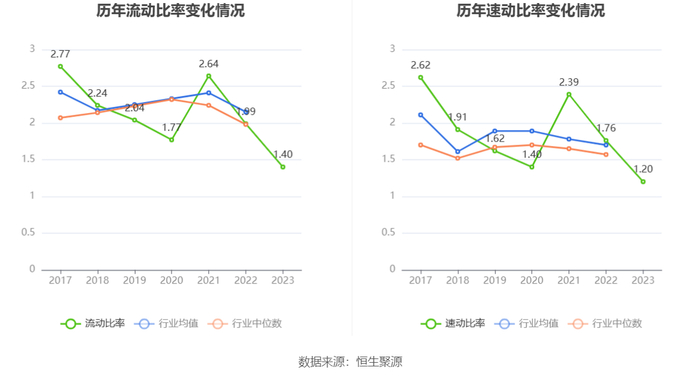 2023年,公司流动比率为1.40,速动比率为1.20。