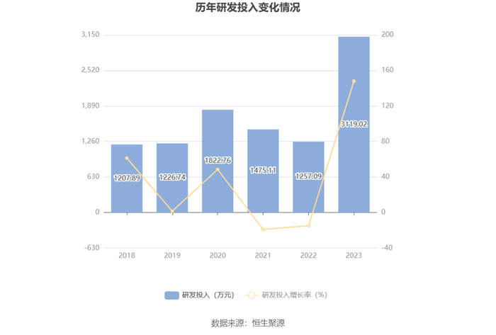 2023年全年,公司研发投入金额为3119.02万元,同比增长148.11%;研发投入占营业收入比例为1.45%,相比上年同期上升0.73个百分点。此外,公司全年研发投入资本化率为0。