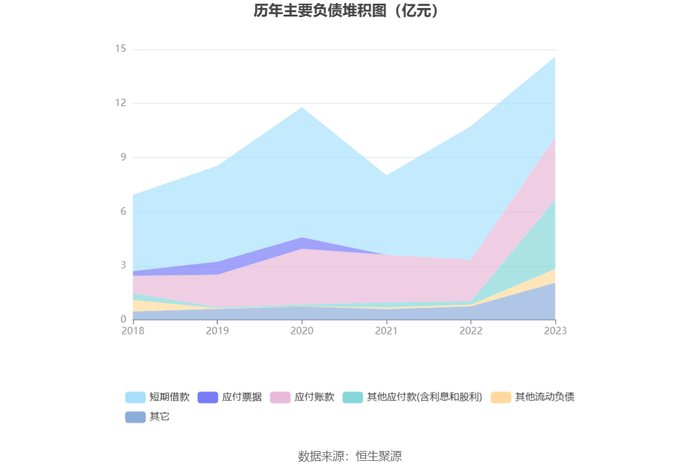 负债重大变化方面,截至2023年年末,公司其他应付款(含利息和股利)较上年末增加1788.03%,占公司总资产比重上升12.02个百分点;短期借款较上年末减少39.78%,占公司总资产比重下降14.56个百分点,主要系缩减融资体量;应付账款较上年末增加50.29%,占公司总资产比重上升2.35个百分点,主要系并购新亚杉杉,导致合并范围增加;其他流动负债较上年末增加733.21%,占公司总资产比重上升2.19个百分点。