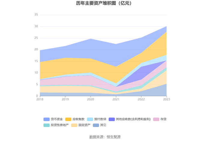 资产重大变化方面,截至2023年年末,公司其他应收款(含利息和股利)较上年末减少98.82%,占公司总资产比重下降21.80个百分点;货币资金较上年末减少64.87%,占公司总资产比重下降18.40个百分点;应收账款较上年末增加129.28%,占公司总资产比重上升15.92个百分点;固定资产较上年末增加406.21%,占公司总资产比重上升14.96个百分点。