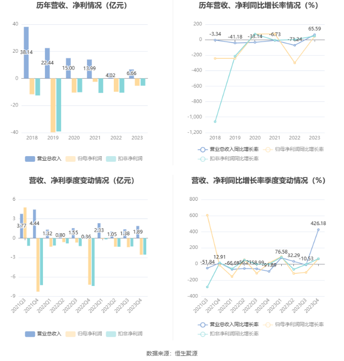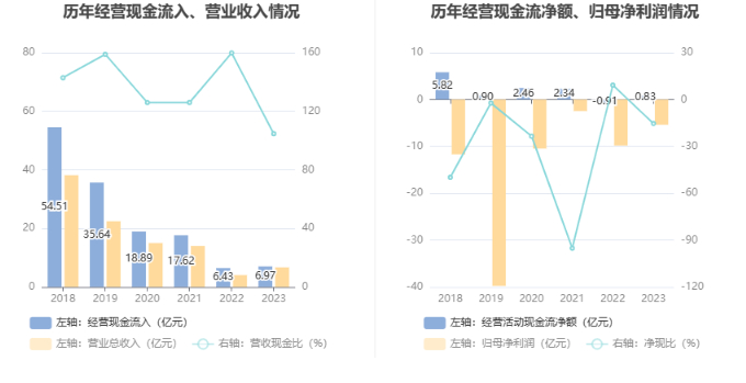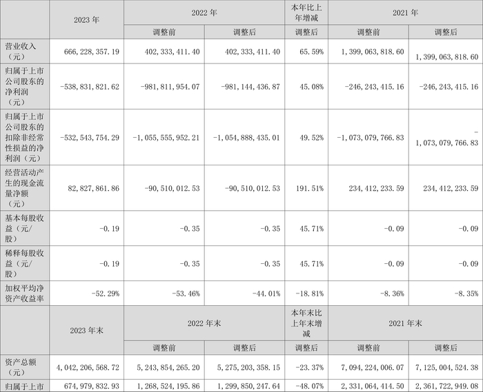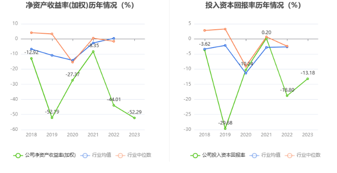 数据显示,2023年公司加权平均净资产收益率为-52.29%,较上年同期下降8.28个百分点;公司2023年投入资本回报率为-13.18%,较上年同期增长5.62个百分点。