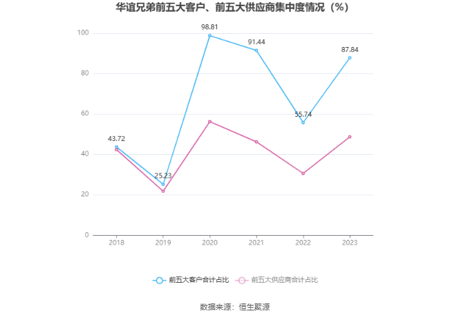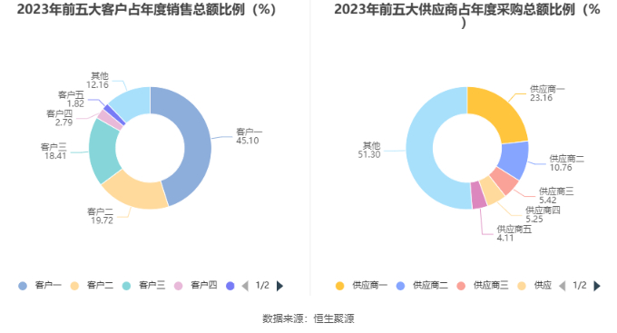 报告期内,公司前五大客户合计销售金额5.85亿元,占总销售金额比例为87.84%,公司前五名供应商合计采购金额2.13亿元,占年度采购总额比例为48.70%。