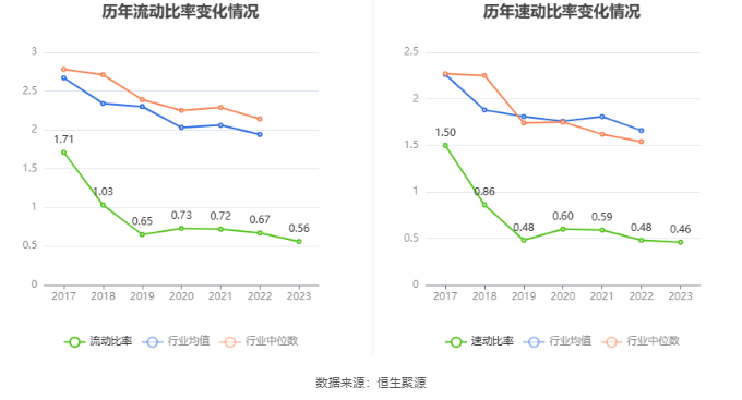 2023年,公司流动比率为0.56,速动比率为0.46。