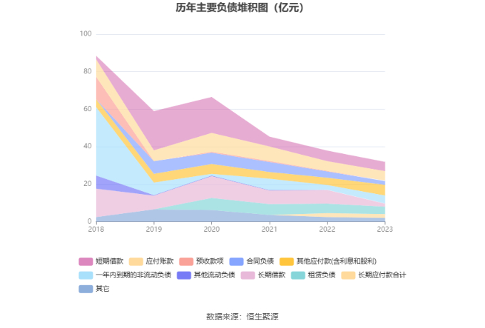 负债重大变化方面,截至2023年年末,公司长期借款较上年末减少78.12%,占公司总资产比重下降9.91个百分点,主要系报告期内一年内到期的长期借款重分类;其他应付款(含利息和股利)较上年末增加47.30%,占公司总资产比重上升6.76个百分点;一年内到期的非流动负债较上年末增加65.19%,占公司总资产比重上升5.66个百分点;合同负债较上年末减少40.46%,占公司总资产比重下降1.41个百分点。