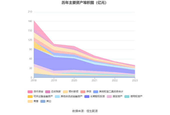 资产重大变化方面,截至2023年年末,公司应收账款较上年末增加279.18%,占公司总资产比重上升5.75个百分点;固定资产较上年末减少53.93%,占公司总资产比重下降4.80个百分点;存货较上年末减少42.45%,占公司总资产比重下降1.89个百分点;其他权益工具投资合计较上年末减少46.43%,占公司总资产比重下降1.19个百分点。