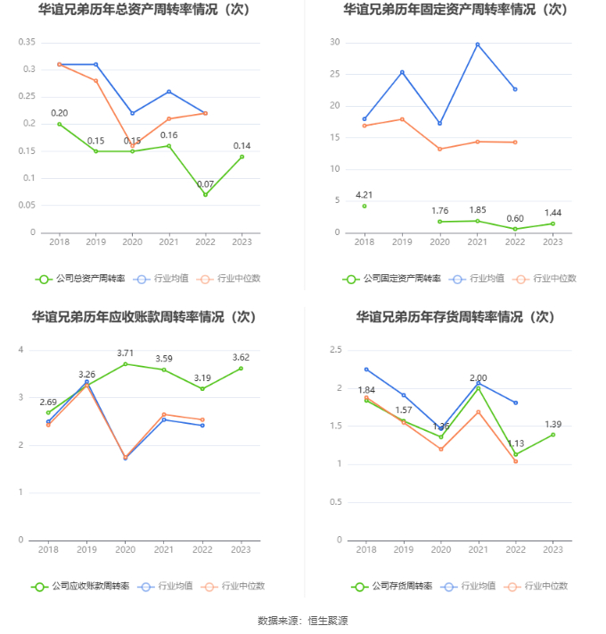 营运能力方面,2023年,公司公司总资产周转率为0.14次,上年同期为0.07次(2022年行业平均值为0.22次,公司位居同行业15/16);固定资产周转率为1.44次,上年同期为0.60次(2022年行业平均值为22.64次,公司位居同行业16/16);公司应收账款周转率、存货周转率分别为3.62次、1.39次。