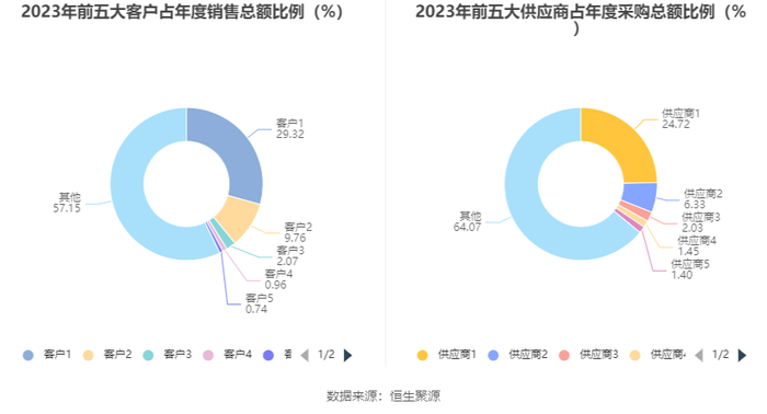 报告期内,公司前五大客户合计销售金额62.64亿元,占总销售金额比例为42.85%,公司前五名供应商合计采购金额39.43亿元,占年度采购总额比例为35.93%。