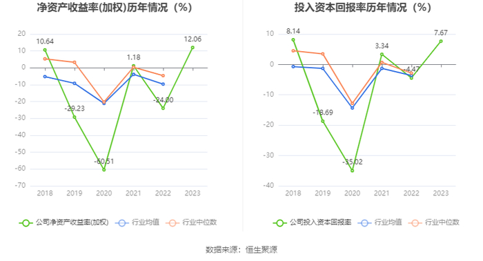 数据显示,2023年公司加权平均净资产收益率为12.06%,较上年同期增长36.06个百分点;公司2023年投入资本回报率为7.67%,较上年同期增长12.14个百分点。