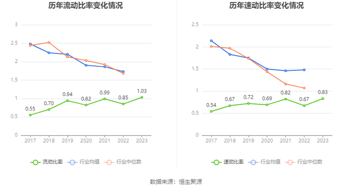 2023年,公司流动比率为1.03,速动比率为0.83。