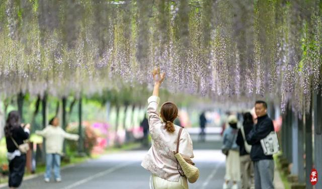 据了解,东平国家森林公园千米长廊栽种的长穗花紫藤,有白色、紫色、粉红色,花穗长,垂坠感好,能营造出“花瀑”效果。据园方介绍,最佳观赏期将持续到本月初。