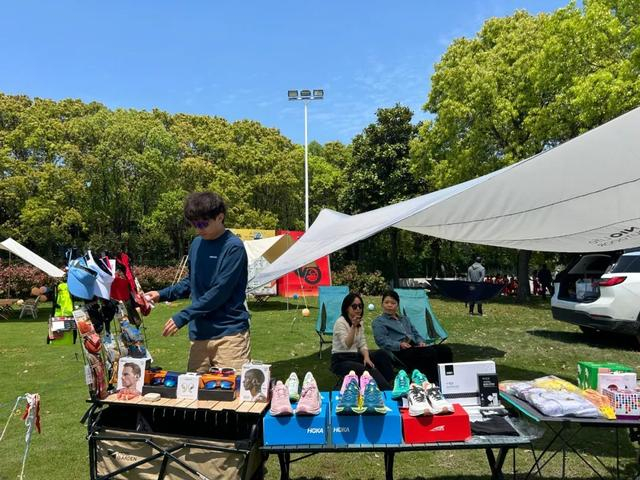 嘉北郊野公园的PARK CYCLING小镇被评为“长三角地区体育旅游精品目的地”,一场园汽生活派对正在进行。市民张先生和朋友一起来参加活动之一蔚来后备箱迷你市集,他们带上各类户外装备,以运动会友,解锁户外露营新方式。
