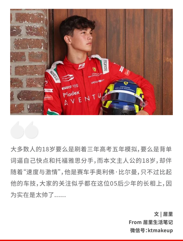 前阵子网上冲浪时刷到赛车手Oliver Bearman(奥利佛·比尔曼),本颜控一下子就被这张脸吸引住了。