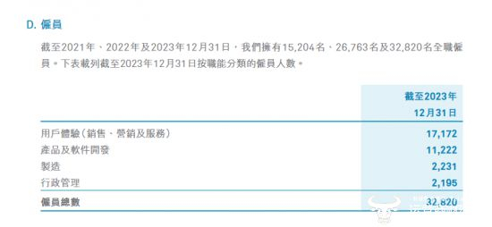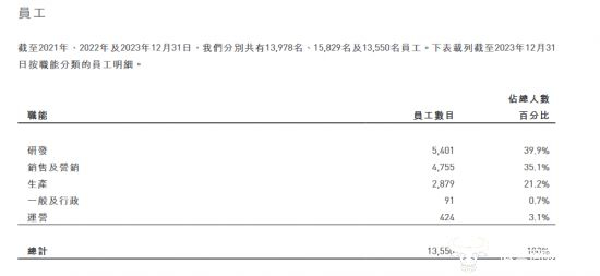 截至2023年12月31日,理想汽车员工合计31591人,其中研发人员数量为6726人,占公司雇员总人数的21.29%;小鹏汽车员工合计13550人,其中研发人员有5401人,占公司雇员总人数的39.86%;蔚来汽车员工合计32820人,其中产品及软件开发有11222人,负责制造的有2231人,二者相加占公司雇员总人数的40.99%。