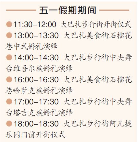 新疆网讯(全媒体记者王丽娜 迪丽阿拉木·艾力木拉提)人生四大喜事:久旱逢甘露、他乡遇故知、洞房花烛夜、金榜题名时。在这个五一假期,作为乌鲁木齐市的特色文旅活动之一,大巴扎步行街上的甜蜜喜事,引起了大家的情感共鸣。
