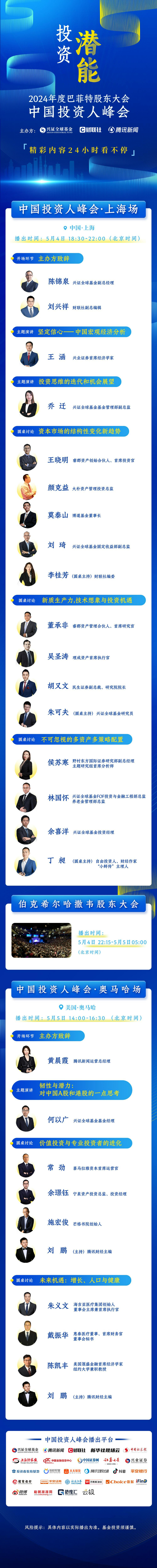 兴证全球基金将再度联手财联社、腾讯新闻举办巴菲特股东大会·中国投资人峰会,此次峰会将在中国上海和美国奥马哈联动举办。今年的峰会以“潜能”为主题,汇聚了国内外投资人、优秀企业家、媒体人等各界嘉宾,共同讨论“投资·韧性”,打造一场洞察产业变化新动能、主动投资新解法和多资产配置新格局的盛会。