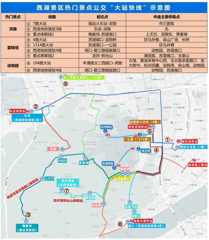 2.推荐前往热门景点灵隐、雷峰塔、动物园的游客搭乘公交“大站快线”。