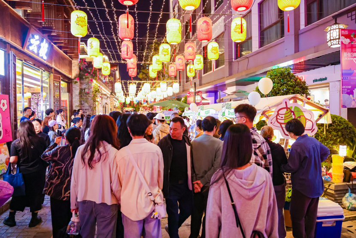 如今的游客不再满足于简单的游乐观光,而是喜欢融入当地生活。基于这种市场变化,今年五一熙南里在推出假日活动时,更加突出多元业态的融合发展,将夜游、夜购、夜娱、夜食、夜宿等夜间消费元素串珠成链,打造层次丰富的夜游产品线。游客来熙南里可以赏花、拍照、品茶、观展、看演出,还可以住下来,品味老字号美食,体验《甘宅雅韵》里的科技+文化感。此外,熙南里正积极打造国际消费友好街区,联合支付宝等深化支付服务场景建设,丰富支付服务供给,为国内外游客提供多样化支付服务。