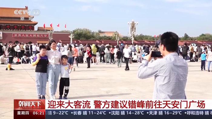 相关数据显示,今年五一期间天安门广场将迎来大客流游客。警方提示,合理选择出行,建议错峰前往天安门广场。