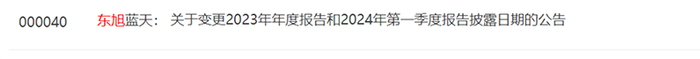 事实上,东旭蓝天和东旭光电的年报“难产”已有前兆。根据两家公司之前公告,2023年年报的披露时间应为4月27日。回顾来看,东旭蓝天和东旭光电4月26日晚公告称,因年报编制及复核工作进度晚于预期,相关工作尚需进一步完善,为保证公司信息披露的准确性和完整性,经向深交所申请,将2023年年报及2024年一季报披露时间变更至4月30日。