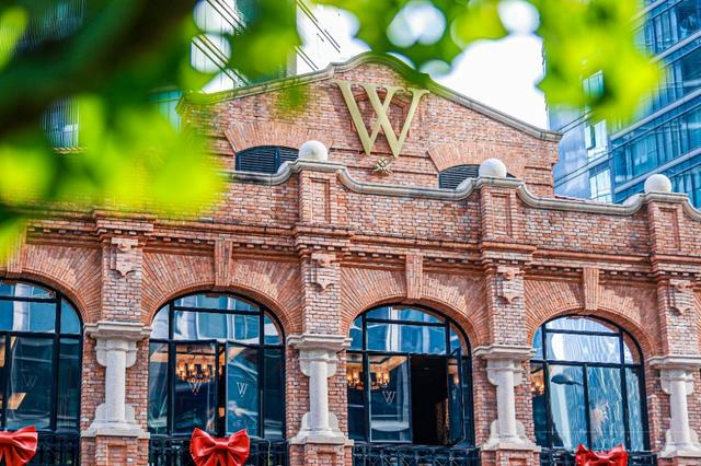 远远的,你便会被经典的“沃夫冈红”门头指引,站在马路对面看,这幢Art Deco风格建筑既铺垫着古典摩登的视觉基调,又不乏时髦优雅的现代艺术感,极富历史韵味的清水红砖墙穿越感十足,化身为美食美景交融的“新海派客厅”。