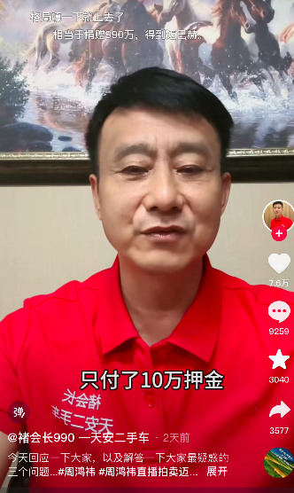 不只是该博主,多位参与竞拍的二手车商昨晚都在直播时透露,周鸿祎没有收到车款。一时间,买家褚会长成为众矢之的,同行纷纷指责其缺乏契约精神。