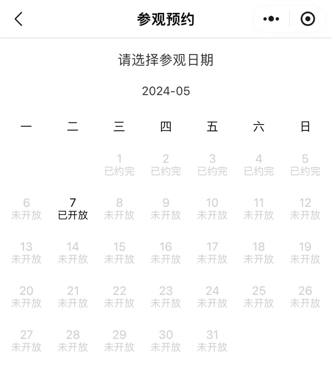 5月1日-5日,7日,中国国家博物馆参观预约显示约满。