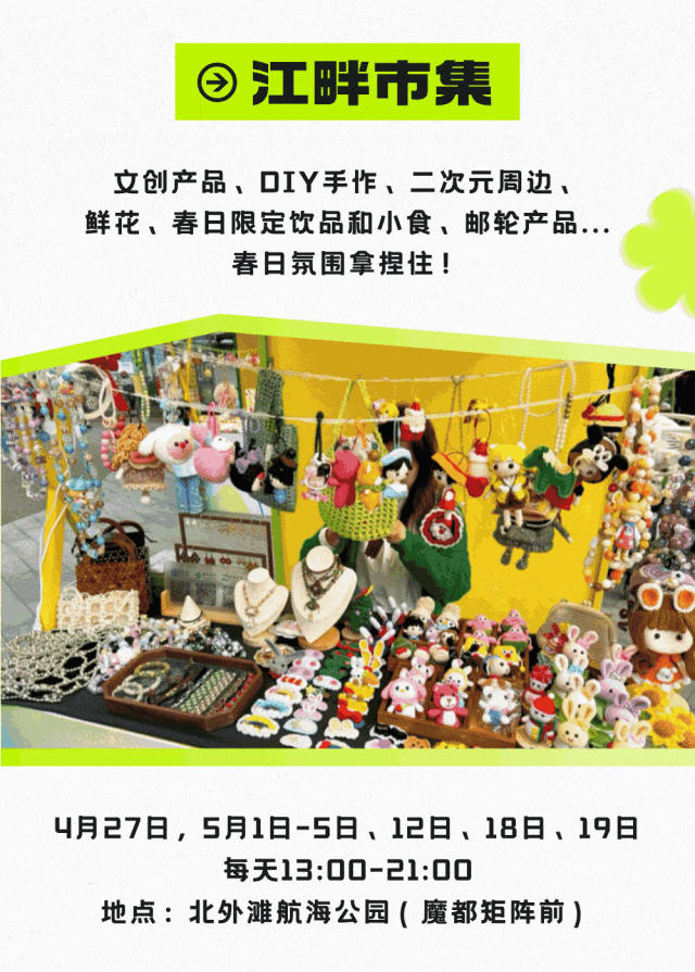 记者还了解到,五一的国客中心很好玩。北外滩航海公园(魔都矩阵前),江畔市集正在举办中。
