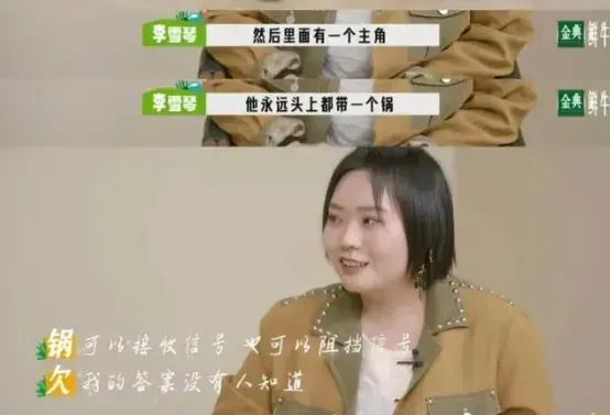 而在综艺《五十公里桃花坞》中,主持人让李雪琴用工作人员郭倩名字的谐音作诗。李雪琴提到《宇宙探索编辑部》的顶锅少年给了她灵感,即兴作下三行诗——