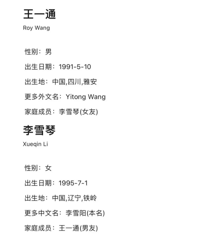 在李雪琴和王一通的豆瓣主页介绍上,家庭成员那一栏都写着对方的名字,大大方方地秀着恩爱。
