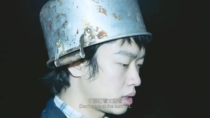 电影里,王一通扮演会念诗的神秘少年孔一通,因为常常晕倒,便一直头顶一口铝锅保护自己。