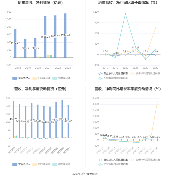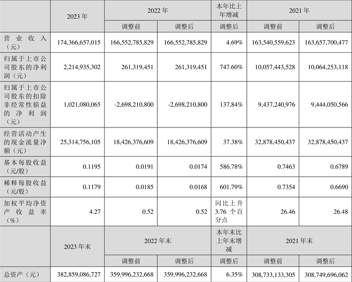 数据显示,2023年公司加权平均净资产收益率为4.27%,较上年同期增长3.75个百分点;公司2023年投入资本回报率为2.84%,较上年同期增长1.05个百分点。