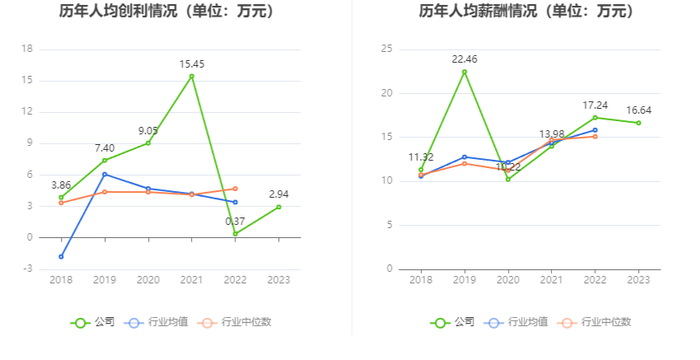 截至2023年末,公司员工总数为75217人,人均创收231.92万元,人均创利2.94万元,人均薪酬16.64万元,较上年同期分别变化-2.81%、686.87%、-3.50%。