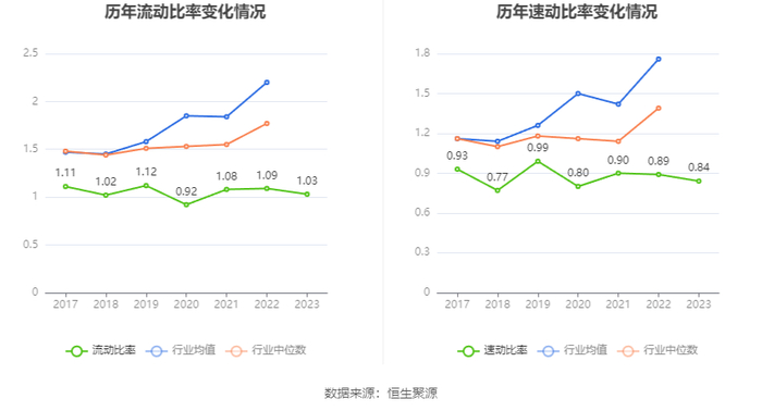 2023年,公司流动比率为1.03,速动比率为0.84。