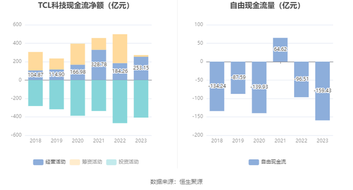 进一步统计发现,2023年公司自由现金流为-159.43亿元,上年同期为-96.51亿元。