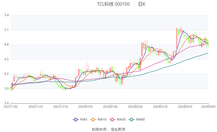以4月30日收盘价计算,TCL科技目前市盈率(TTM)约为40.53倍,市净率(LF)约为1.7倍,市销率(TTM)约为0.51倍。
