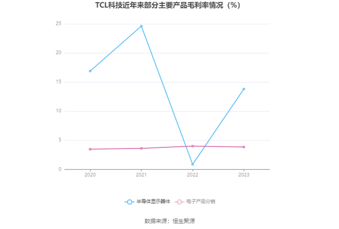 分产品看,半导体显示器件、电子产品分销2023年毛利率分别为13.82%、3.85%。