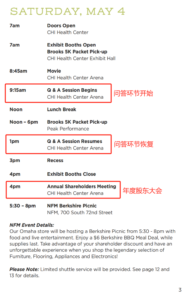 附:巴菲特股东大会日程