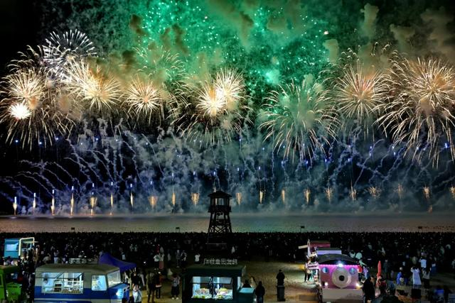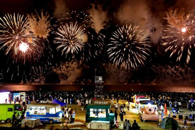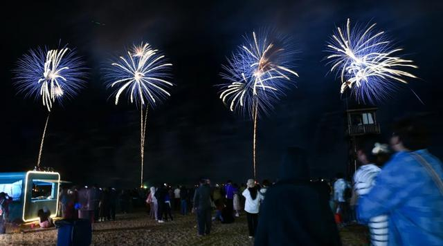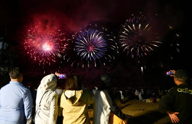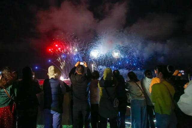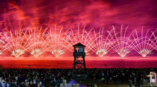 5月2日,2024上海湾区·金山城市沙滩国际音乐烟花秀拉开帷幕。19点,随着舒缓的音乐响起,数十道紫光、黄光、红光从远处一公里的海岸线上一跃而起,在低空、中空、高空依次绽放,有的聚成球状、有的散成花形,还有的恍若流星散落,瞬间点亮城市沙滩的夜空。璀璨的烟花倒映在海面上,形成如梦如幻的立体烟花画卷。