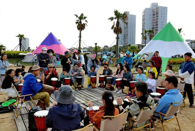 以夜幕为背景,以海面为舞台,金山城市沙滩因其得天独厚的烟花燃放条件,已连续多年为市民游客们演绎美妙浪漫的“海上声光秀”。“去年我就和老婆两个人来看过,觉得特别好看。今年就特地带着孩子也一起过来了,顺便带他来挖沙子。”游客李先生说。
