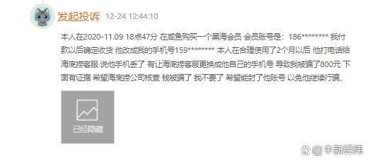 一名大学生曾在某平台售卖代付69折海底捞,顾客登录账户后未经允许擅自用1000捞币兑换了50元优惠券,当事人询问要回未果。更有甚者,卖家会给你挖各种陷阱,比如说好充值一年只给你充值一个月等。曾经就有海底捞顾客投诉在第三方平台购买了黑海会员,在使用两月之后,卖家声称他手机号丢失,要求海底捞客服更改会员信息的手机号,导致该顾客财号两空。
