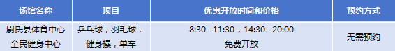 开放项目包含羽毛球、篮球、乒乓球、游泳、广场舞等等多项体育运动。无需预约即可前往,赶紧行动起来!