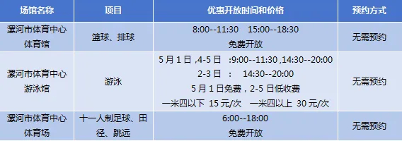漯河市共有漯河市体育中心体育馆、漯河市体育中心游泳馆、漯河市体育中心体育场等3个场馆面向市民免低收费开放