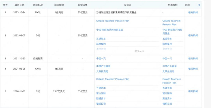 第三种资本则是外资资本,2021年文莱投资局参与了小马智行的C+轮融资,而就在去年小马智行则获得了沙特阿拉伯王国新未来城旗下投资基金的1亿美元融资。