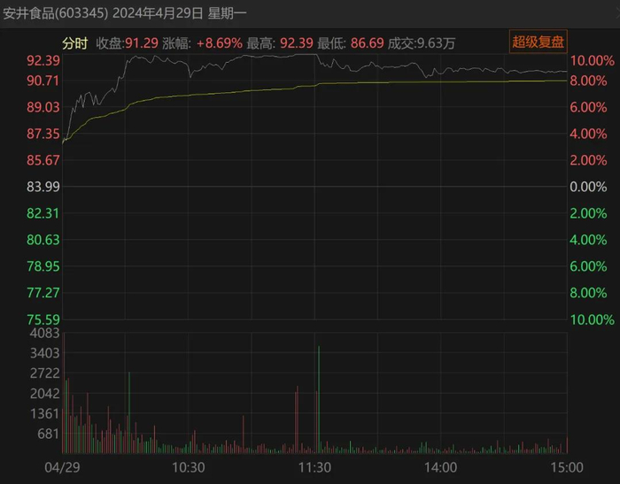 4月29日,著名预制菜公司,有“速冻食品大王”之称的安井食品,在长期下跌之后,出现了难得的大涨: